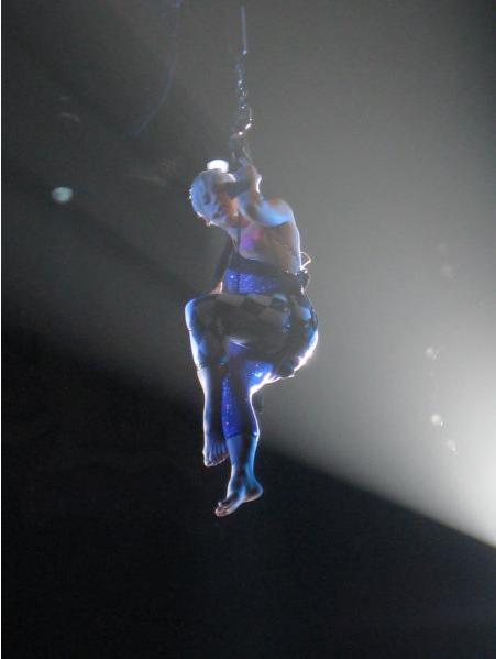 http://www.youtube.com/watch?v=W0tcvENwxKA P!NK singing Get the party started ... & flying again :D